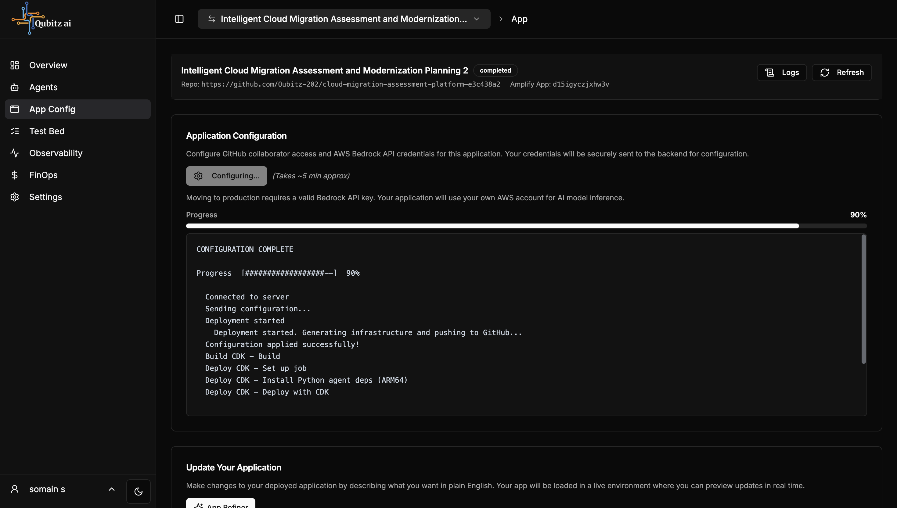 After a successful deployment, Update Your Application (App Refiner) becomes available: