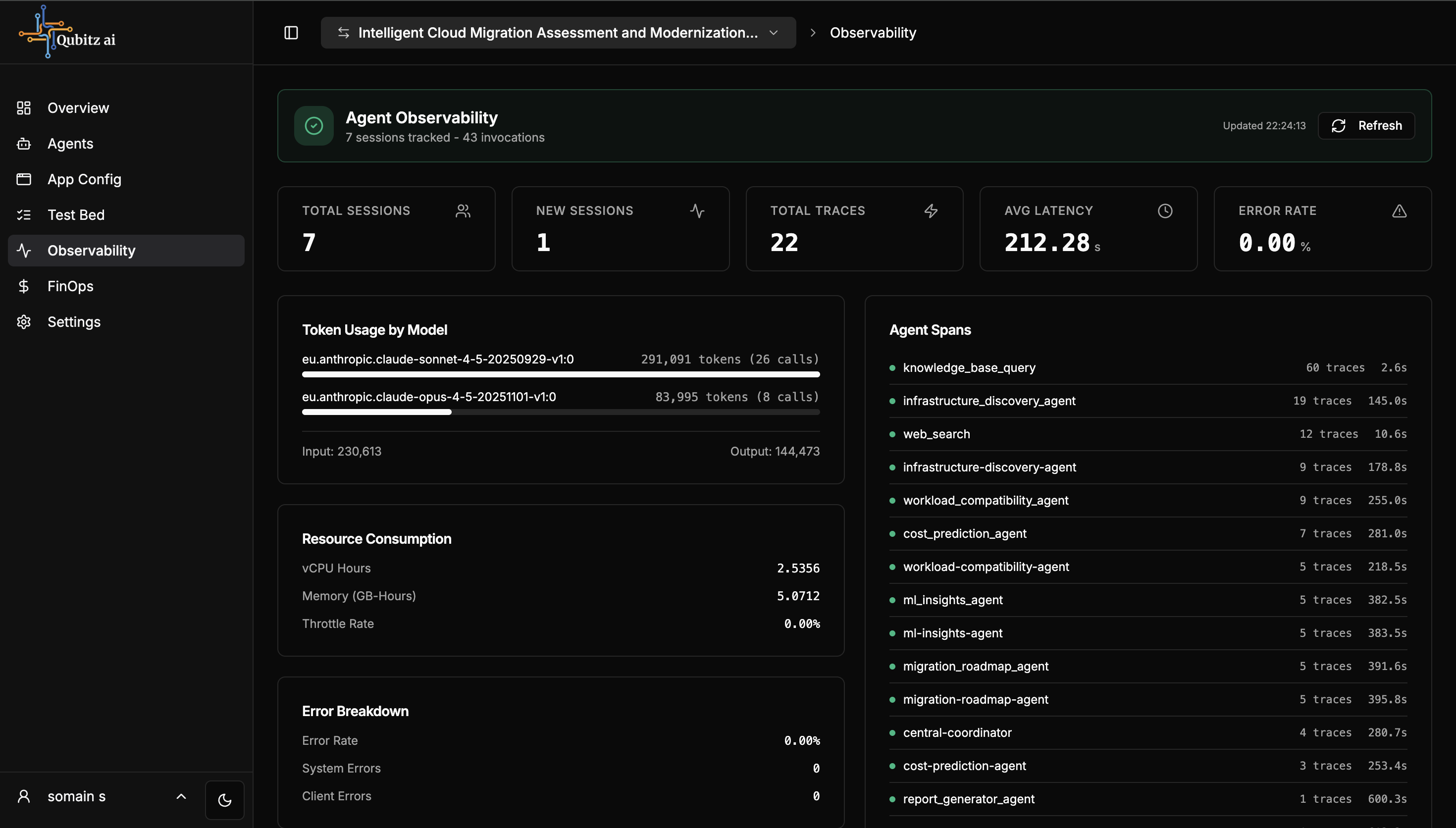 - Agent Spans with trace count, error count, and average latency