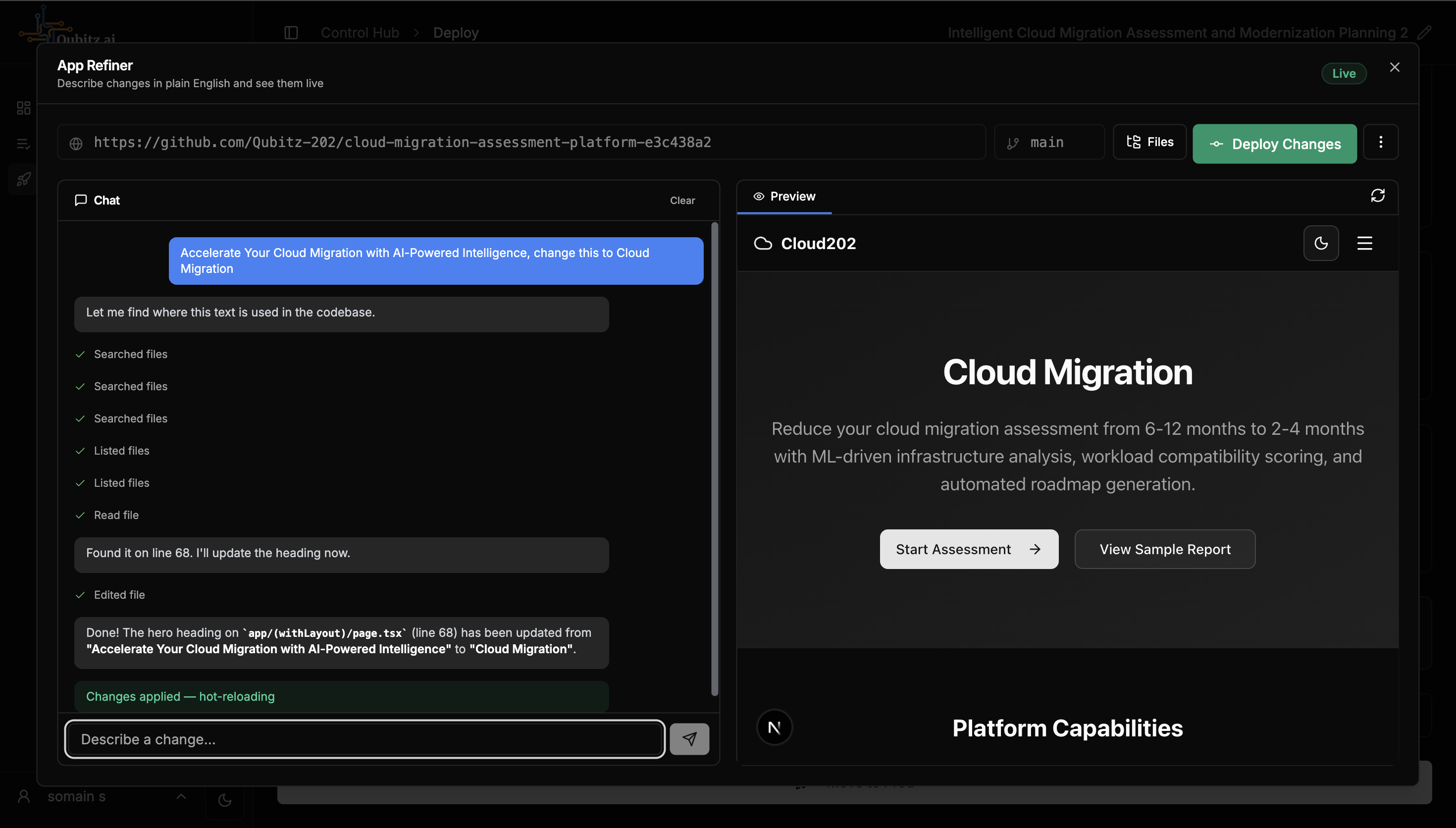 - Describe the changes you want in plain English with live preview