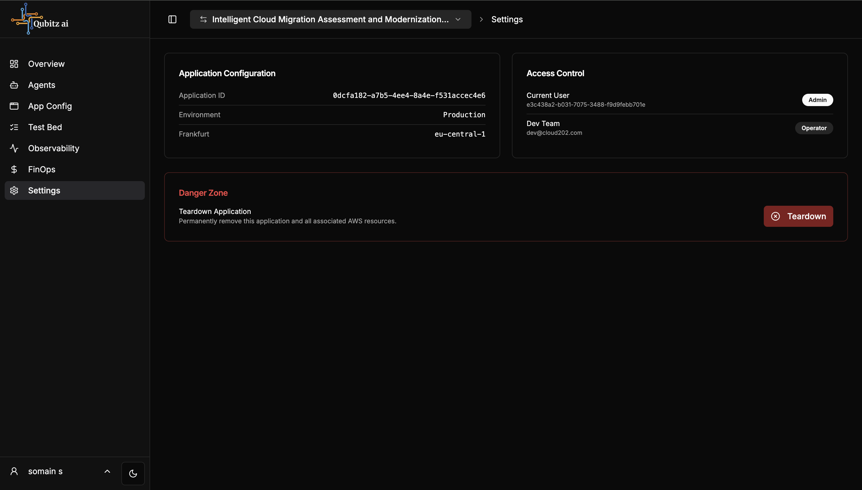 - Danger Zone -- Teardown Application to permanently delete all associated AWS resources (requires typing "delete" to confirm)