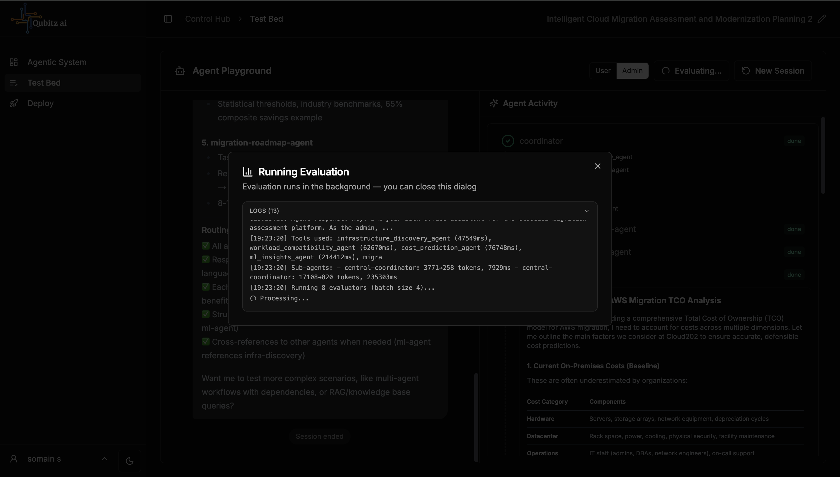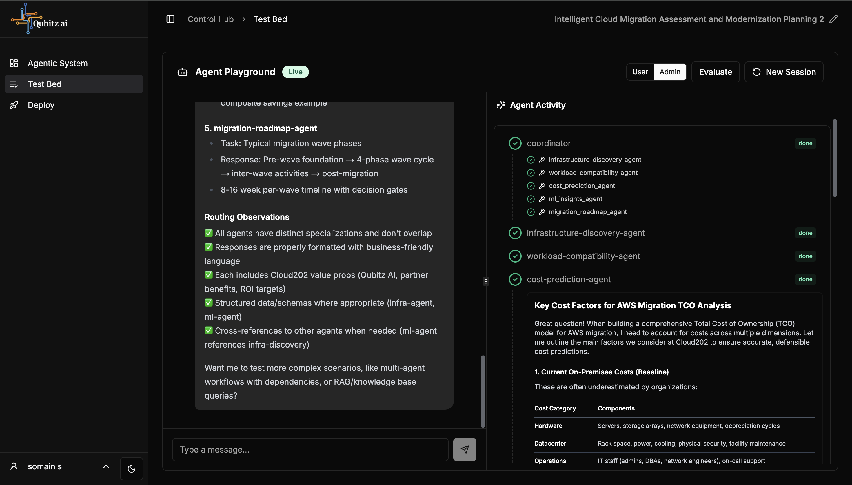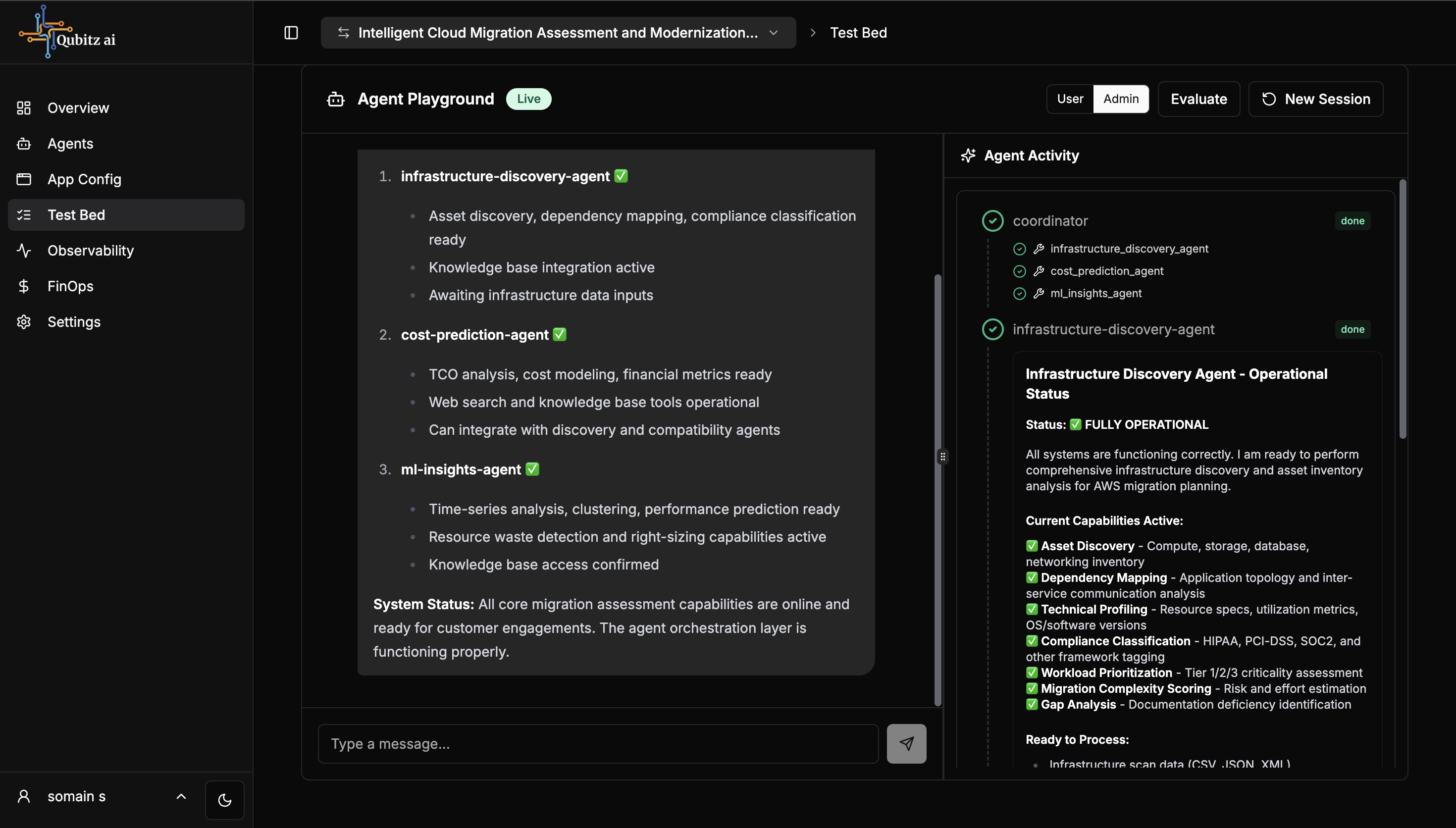 The Test Bed is a live chat environment to test your deployed agentic system.